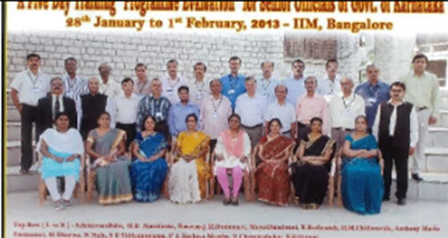 The training programme was organised with financial assistance from Karnataka Evaluation Authority at Indian Institute of Management, Bangalore. It was a FIVE day programme for senior officials of different departments of Government of Karnataka. It was conducted from January 28th to February 1, 2013. The programme covered Karnataka Evaluation Policy; ToR preparation; Sampling and sample design; quantitative and qualitative methods of data collection; Log Frame Approach; Performance Indicators; tools and techniques of data analysis. The programme emphasised on making evaluation work and managing evaluations. The resource persons were drawn from IIMs, ISEC, STEM, KEA and the World Bank.
