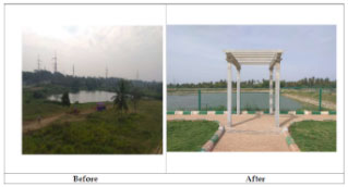 This was taken up under the CSR interventions of Toyota Kirloskar Motors Pvt. Ltd. (TKM), Ramanagara. At the first step a Detailed Project Report (DPR) was prepared for rejuvenation of the lake. The lake was restored by Removal of Slush; Desilting; Bund Formations; Improvements to Lake Water Spread area; Waste Weir; etc. Lake development included Fencing; Separate tank for Idol Immersion; Parks and Playgrounds. The lake was rejuvenated by treating the sewerage water entering into the lake by placing Wetland System, Silt Traps and Collection Chamber. An analysis revealed that there is substantial improvement in essential parameters like Biological Oxygen Demand (BOD), Chemical Oxygen Demand (COD), and Total Solids after rejuvenation of the lake.